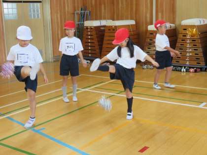 1年生には少し難しいと思っていたチェギチャギ(羽根を落とさないように足で蹴る)も、けっこう上手に蹴っていたので、びっくりしました。