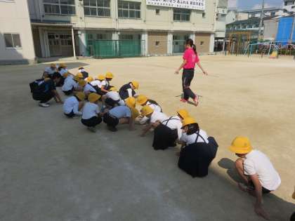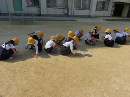 今日3年生が“日なたと日陰”の違いについて、実際に運動場の土を触りながら、その違いについて勉強していました。