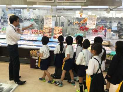ふだんでは入れないお店の裏側に入り多くの発見をすることができました。また、それぞれの売り場を見学し工夫などを教えていただきました。最後にお店の方に学習や見学をしてきて感じた疑問を質問することができました。