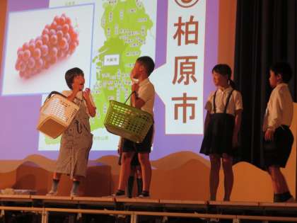 『スマイル☆ジャーニー 大阪OSAKA』というタイトルで、社会科で学習した大阪府の特色について、劇仕立てに仕上げて発表します。