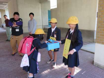 学校では、今週は『あいさつ週間』。そして、『赤い羽根の共同募金』も一緒に行います。