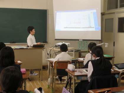 今日は全員がタブレットを使って、実際に三角形を重ねたりばらしたりしながら自分で考えて求めていました。