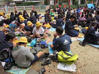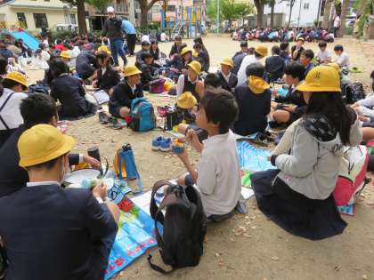劇場の中は写真撮影が禁止だったので、入場する様子と終わってから公園でお弁当を食べている写真を3枚載せておきます。