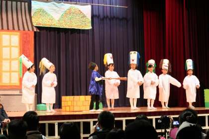 子ども達は、今日の日のためにセリフを覚え、身ぶり手ぶりも入れて大きな声で発表できるように何回も何回も練習してきました。今日はその子ども達のガンバリを見ていただけただけで、とてもいい機会だったと思っています。
