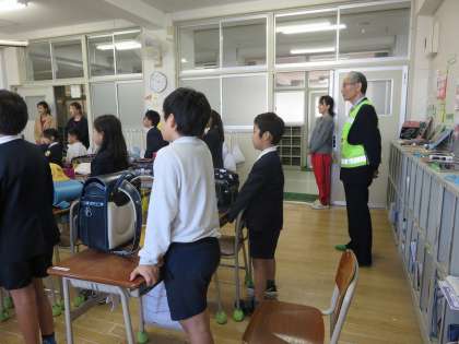今日は下校の途中で、『こども110番の家』へあいさつをすることになっています。みなさん、うまくあいさつすることはできたでしょうか・・。