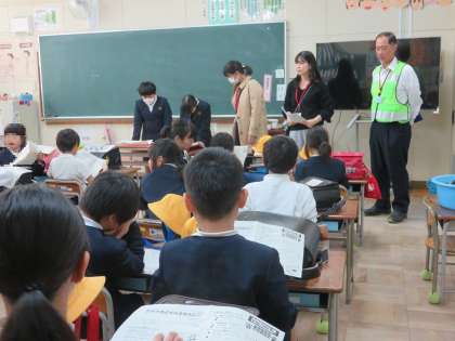いつも集団登校をしているグループが教室に集まり、冬休みの生活や登下校についての話し合いをしました。