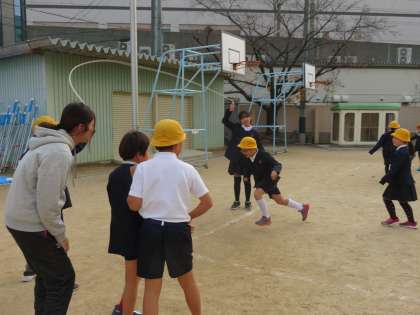 怖くて縄の中に入れない子には、高学年の子が手を引っ張って一緒に走り抜けている姿は、とても微笑ましかったです。