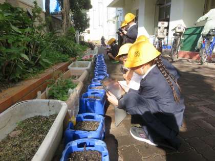 今日は1年生がその成長の様子をタブレットで撮影していました。