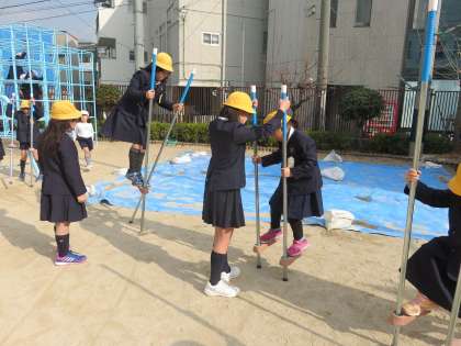 また竹馬も余っている竹馬がないぐらい、みんなで使っていました。高学年の子が1年生に乗り方を教えている様子など、ほんとに微笑ましい交流がいっぱい見られました。