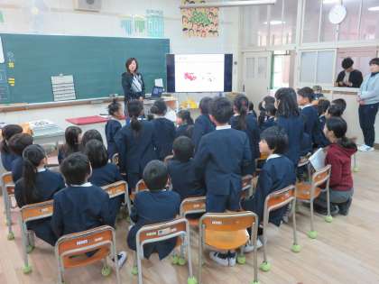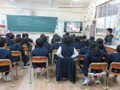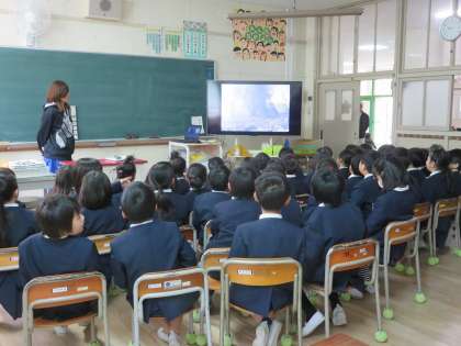 まず1・2年生は、『防災学習』を行いました。DVDを視聴したりクイズに答えたり、分かりやすい内容で、地震の恐ろしさや防災についての勉強をしました。