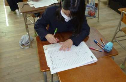 漢検受検に向け、「家庭学習がんばり週間」や日々の自主学習で練習問題に取り組んできました。努力してきたことがしっかりと発揮できていることを期待しています。