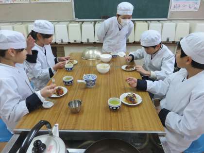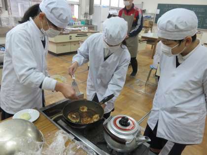 家庭科室に入ったとたん、ごま油とタレが焼けた香ばしいにおいがしてきました。
