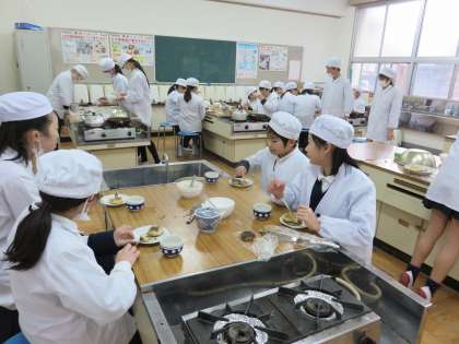 5年生が家庭科の調理実習で、『五平餅』を作っていました。単元でいうと、ご飯を炊いて緑茶も入れて一緒にいただくという内容です。