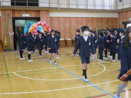 この『卒業を祝う会』は、各学年から6年生への感謝の気持ちを表すために、歌や合奏をしたり、プレゼントを渡したりします。6年生からも手作りのプレゼントが渡されます。言うなれば、子ども達だけの『卒業式』と言ったところです。