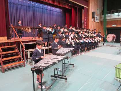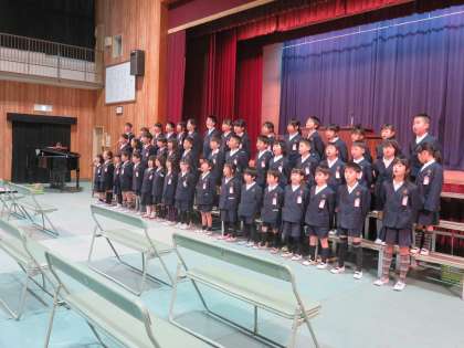 呼びかけや学習発表会で披露した“おおきなかぶ”の一コマを発表したり、合唱や合奏を行ったりします。