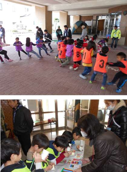 朝、大雨が降り、ゲーム等をピロティーで行いましたが、どのプログラムも予定通り行うことができました。