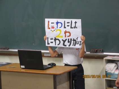 本日の児童集会は、暑さ対策としてリモートにて行いました。集会委員会の子たちが考えた早口言葉に挑戦しました。