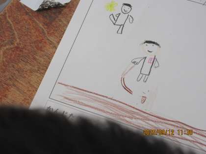 今週は、身近な国に親しむ週間で、韓国や中国の遊びに触れた後の感想や絵を描きました。