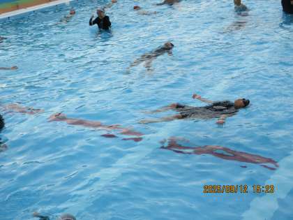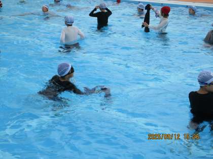 本日5年生が今年度最後のプールす家となりました。3年生の時にも実施した着衣泳を体験しました。