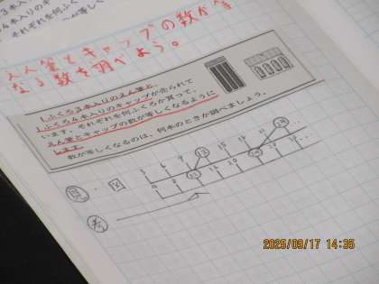 鉛筆とキャップの数が等しくなるにはどのように考えるかについて、学しました。