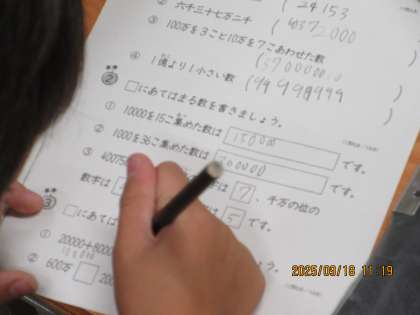大きな数について、練習問題に取り組みました。