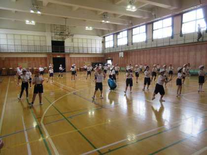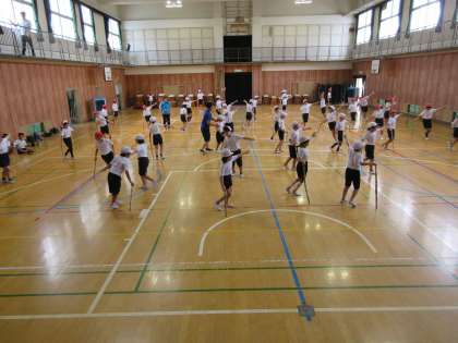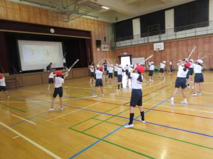 運動会に向けて、新聞紙を丸めたお手製のスティックを使い、ダンスの練習が始まりました。