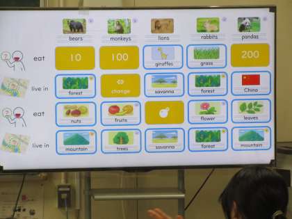 動物が食べるものについて答えたシートの裏に点数が隠れていて、点数を競うゲームをしました。