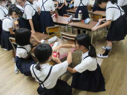 中休み時間を利用して、ポンポンを作りました。
