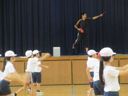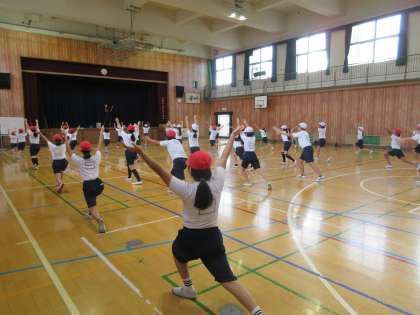 運動会で披露する団体演技の練習をしました。まだ、3回目なのによく動けていました。