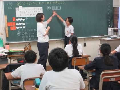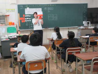 「分数と少数、整数の関係を調べる」単元の1時間目として、研究授業を行いました。
