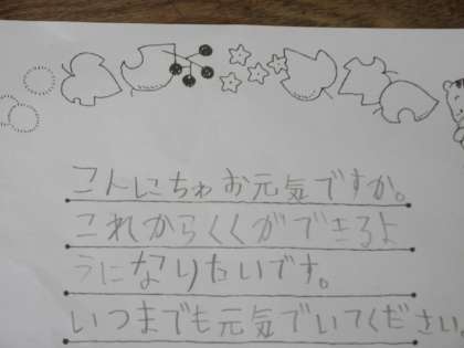 11月、本校で開催される敬老大会でお渡しするお手紙を書きました。