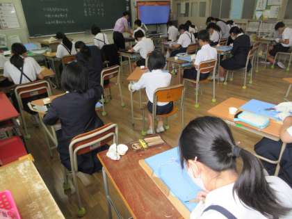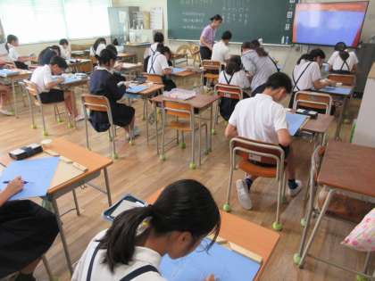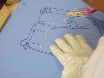 彫刻刀の安全な使い方をしっかりと聞いてから、版画の制作に取り掛かりました。