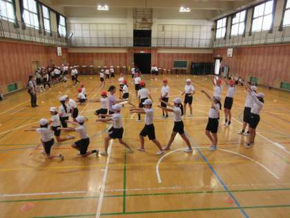 本日は、天候不順だったため、講堂で練習しました。