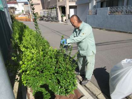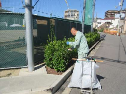 管理作業員さんが、運動会前に、第二運動場周辺の植木を選定してくださいました。
