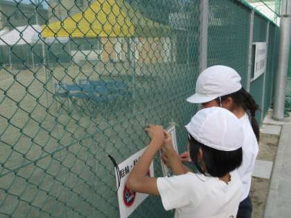 放課後、5・6年生の子どもたちが、運動会の係ごとに分かれての準備、その後、掃除、石拾いなどを手伝いました。