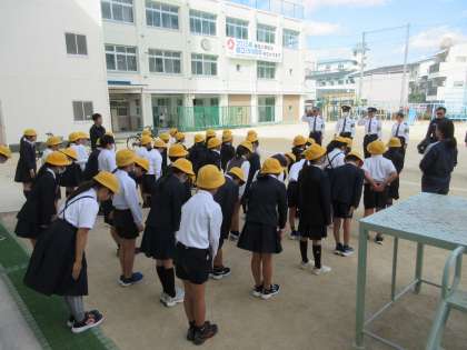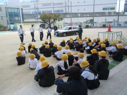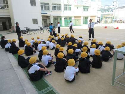 本日、東淀川警察署ならびに東淀川区役所の皆さんが来てくださり、1・4年生の子どもたちを対象に、安全な歩き方や自転車の乗り方など実演を交えながらの授業をしてくださいました。