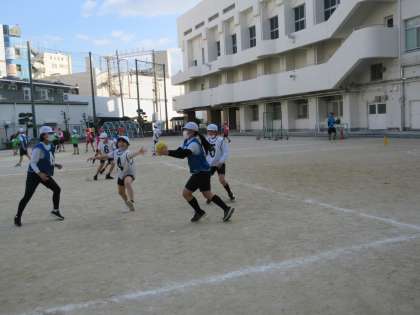 ハンドボールのゲームをしました。