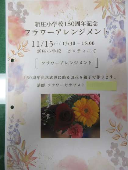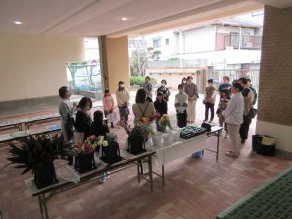 本日、講師の先生をお招きして、PTA主催のフラワーアレンジメントを行いました。