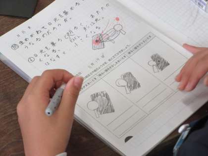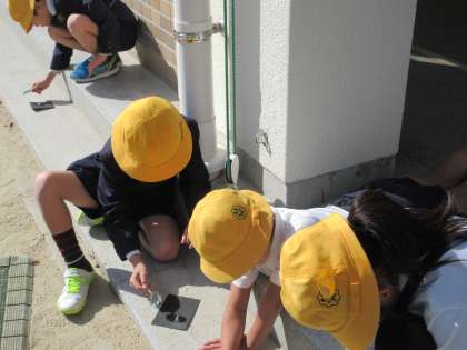 虫眼鏡で日光を集めると、どうなるかを調べました。
