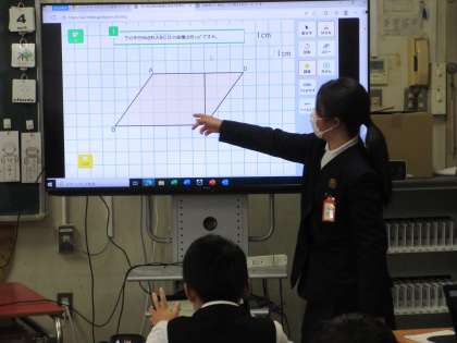 平行四辺形の面積の求め方について、学習をしました。