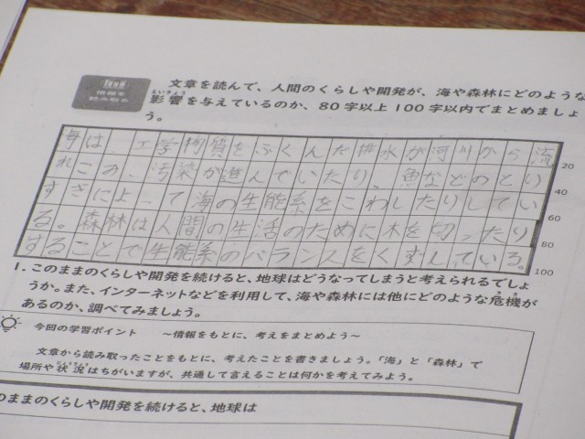 人間の暮らしや開発は、海や森林林にどのような影響を及ぼすかを読み取りました。