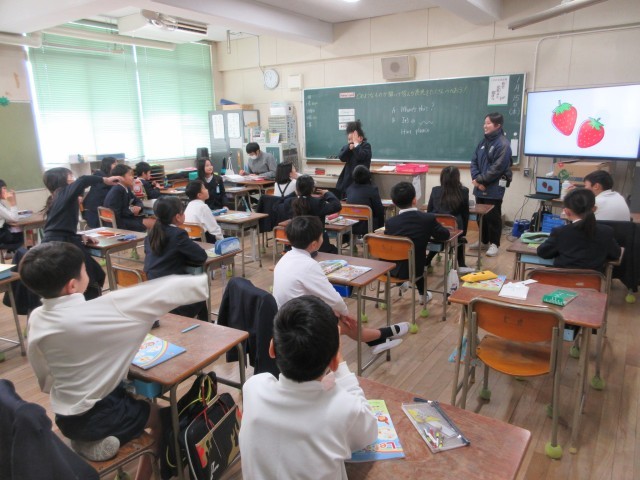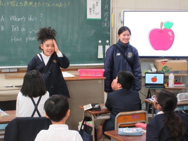 みんなからヒントをもらって、電子黒板に映し出されたものは何かをあてる活動をしました。
