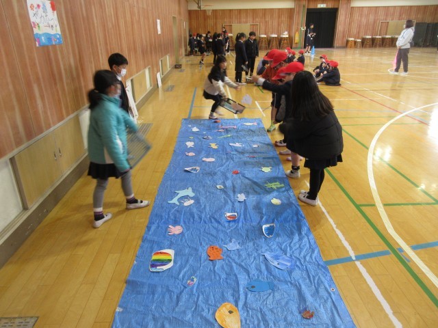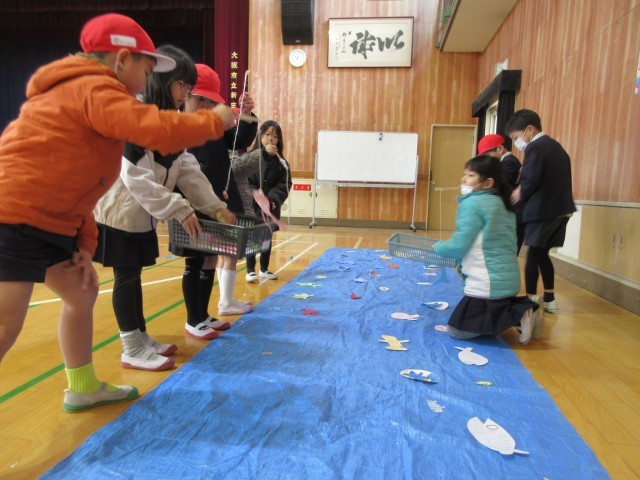 1年生を招待して、2年生が作った9種類のおもちゃで遊びました。2年生の子たちは、1年生をうまくリードしていました。