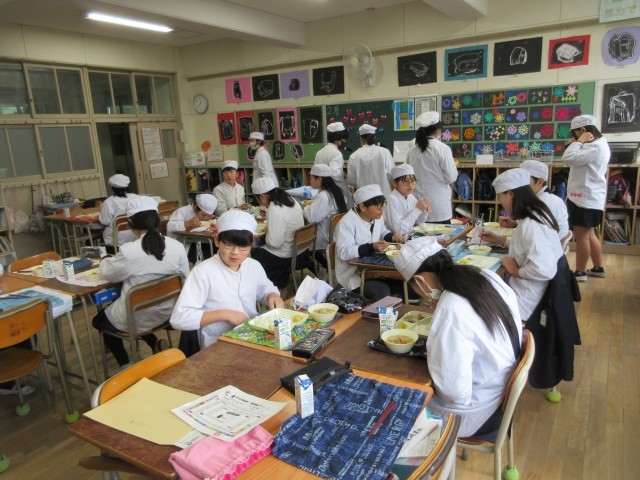 今週は、給食週間です。今日は、給食について考える日としています。いつも作り立てで、温かくて、おいしい給食を作ってくださる給食調理員さんへの感謝の気持ちを持ちながら食べました。