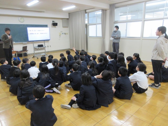 3・4年生は、区役所の防災担当の方からのお話をお聞きしました。