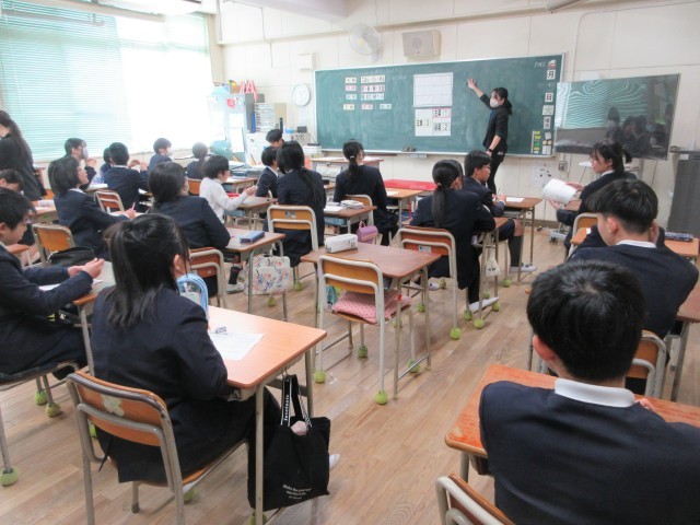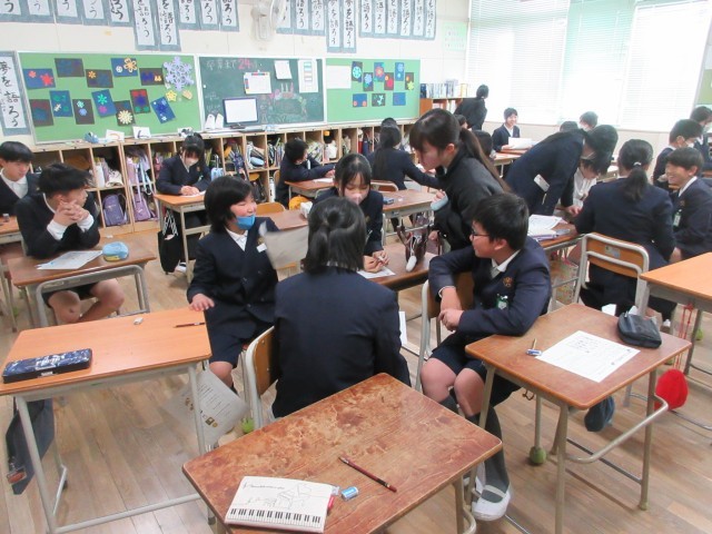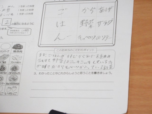 栄養や色などのバランスを考えた私のお弁当を、班で発表しました。
