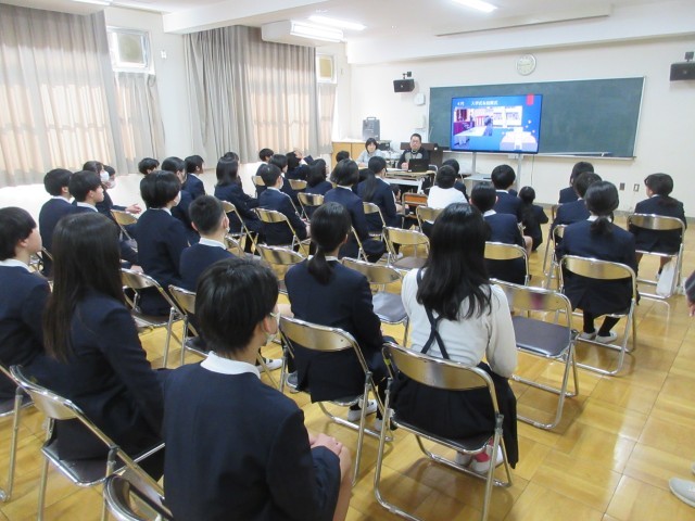 新東淀中学校の先生が来てくださり、中学校生活についてお話をしてくださいました。