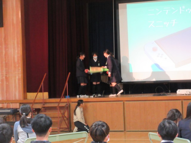 自分たちで考えた寸劇です。飛び入りの子や先生がいて、大盛り上がりです。