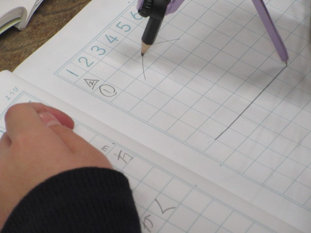 二等辺三角形の表し方を学習しました。