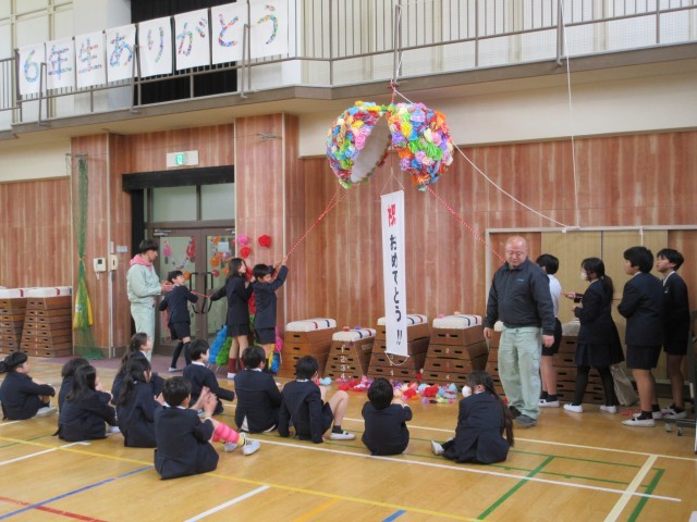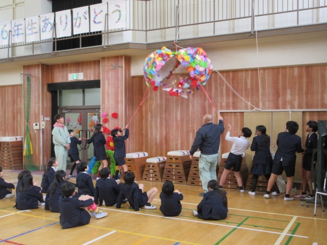 150周年記念式典に使ったくす玉を、管理作業員さんが再生してくださり、見事に割れました。